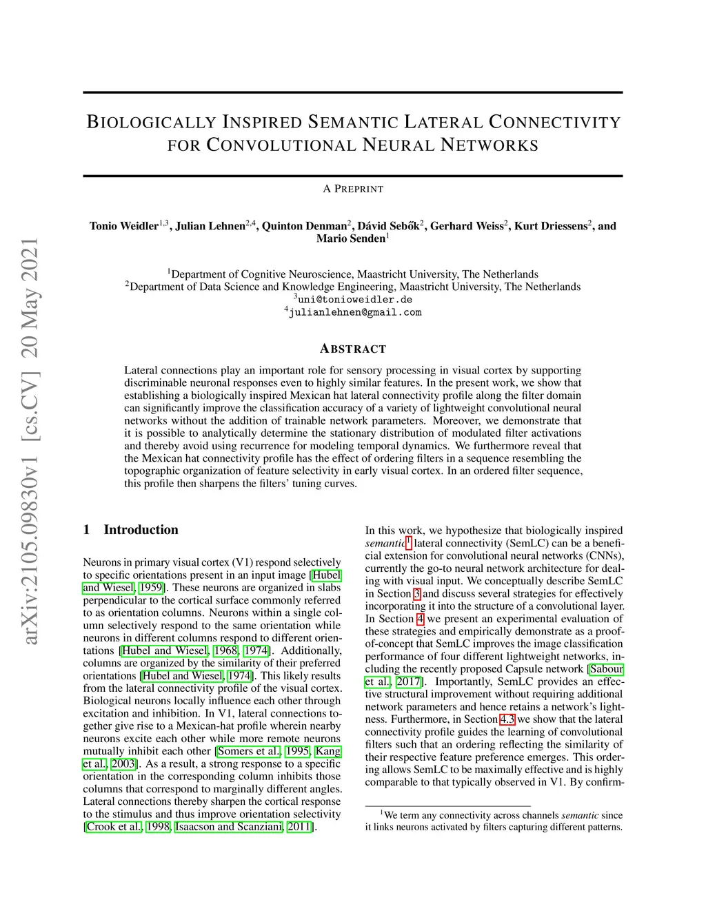 Biologically Inspired Semantic Lateral Connectivity for Convolutional