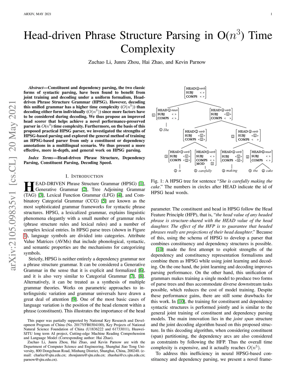 Head-driven Phrase Structure Parsing in O() Time Complexity