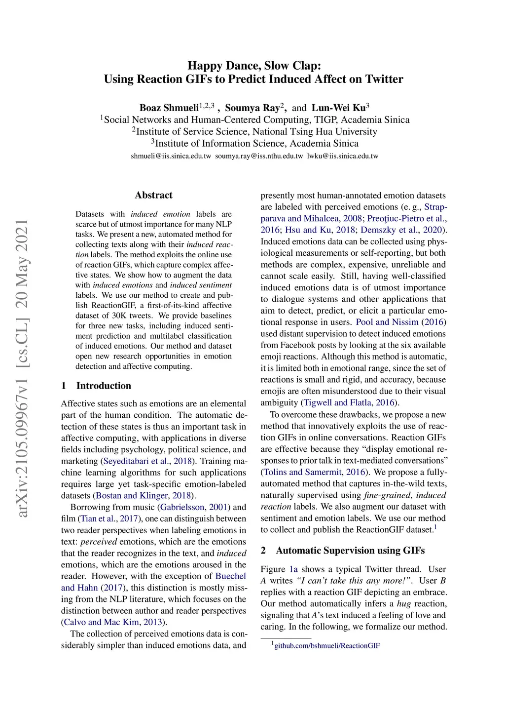 Happy Dance, Slow Clap: Using Reaction GIFs to Predict Induced Affect on