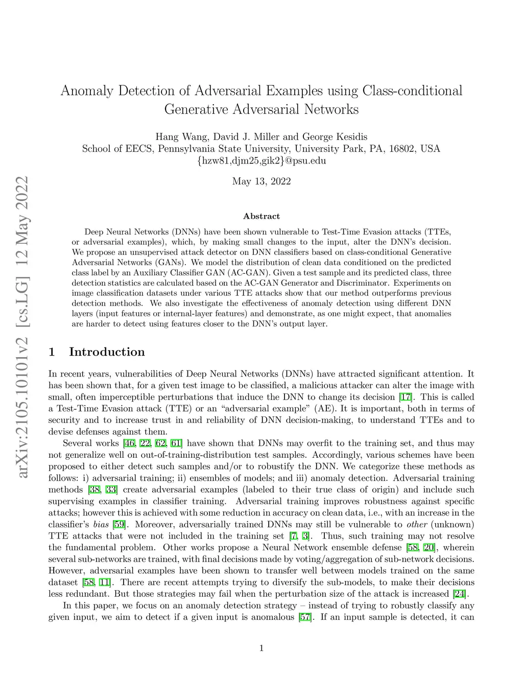 Anomaly Detection of Adversarial Examples using Class-conditional