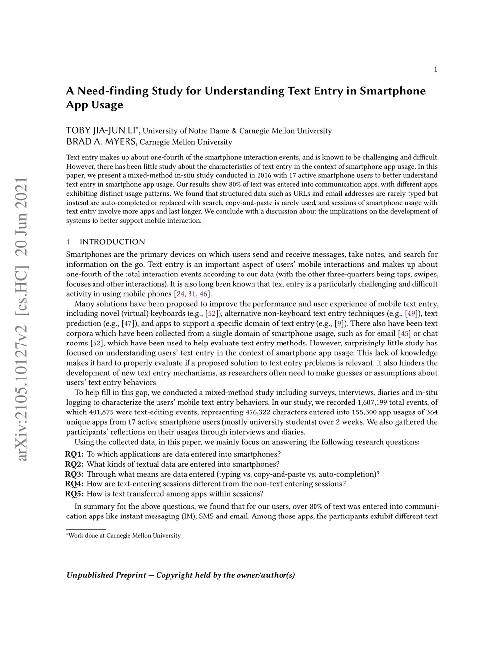 A Need-finding Study for Understanding Text Entry in Smartphone App