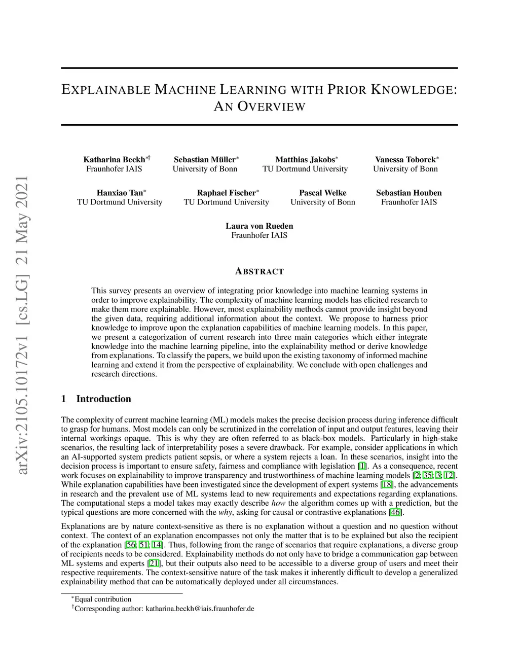 Explainable Machine Learning with Prior Knowledge: An Overview