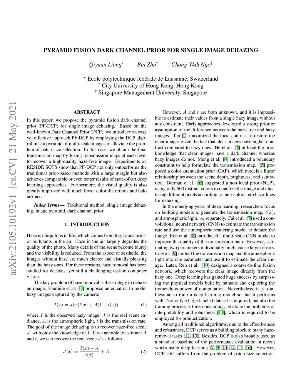 Pyramid Fusion Dark Channel Prior for Single Image Dehazing