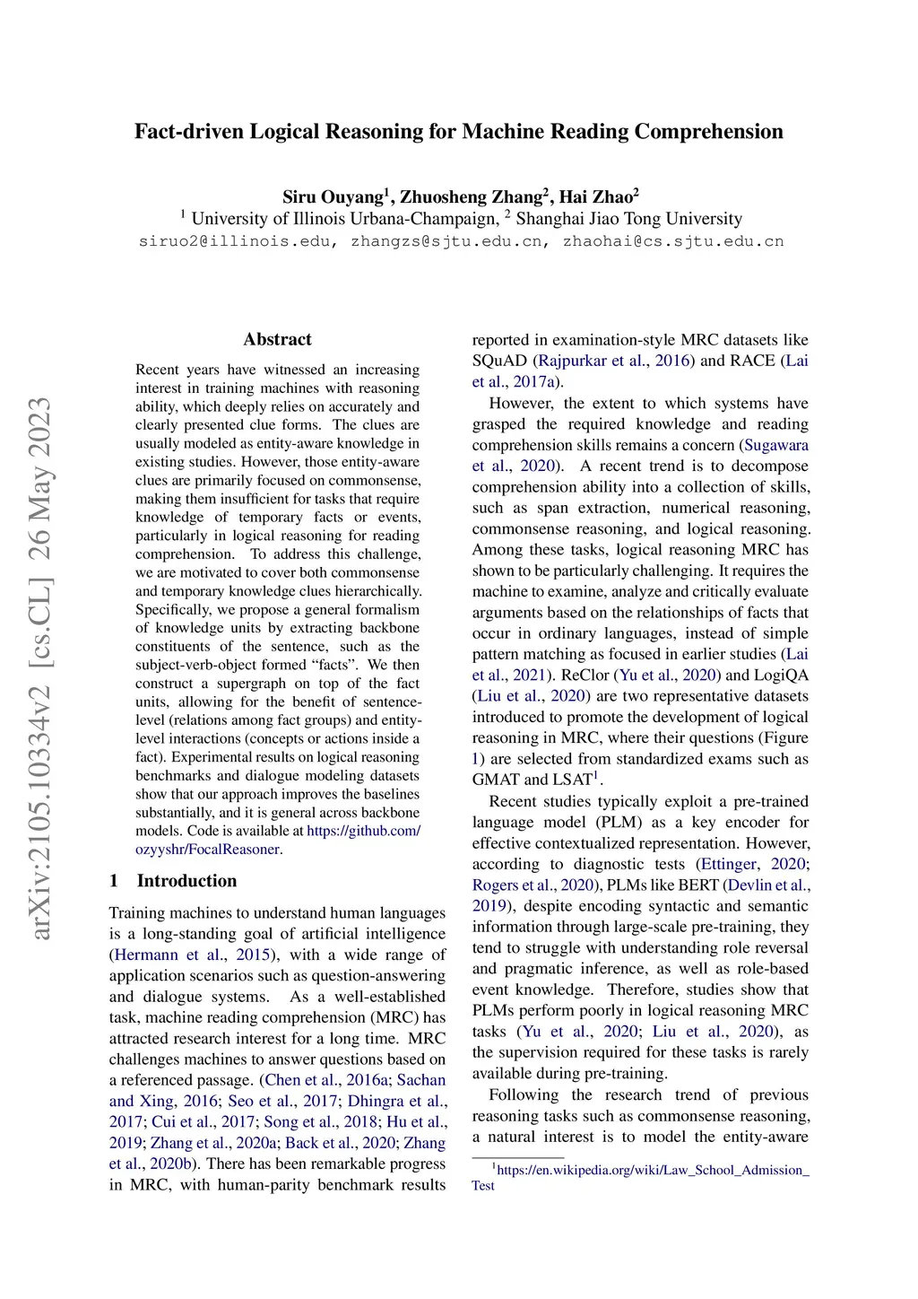 Fact-driven Logical Reasoning for Machine Reading Comprehension