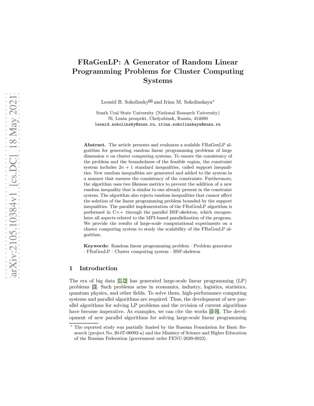 FRaGenLP: A Generator of Random Linear Programming Problems for Cluster