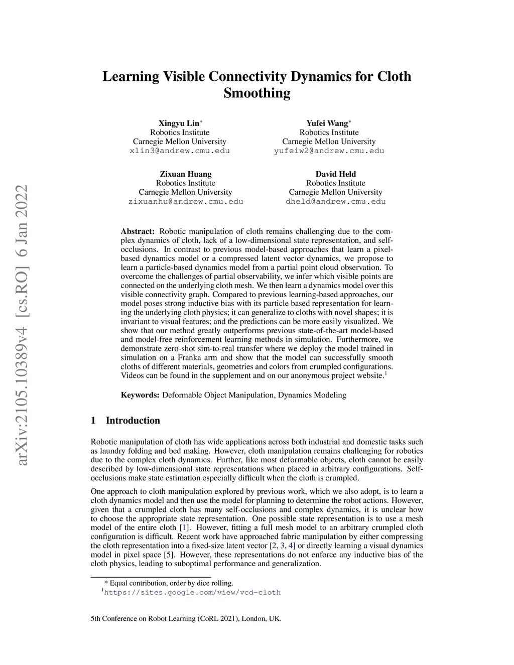 Learning Visible Connectivity Dynamics for Cloth Smoothing