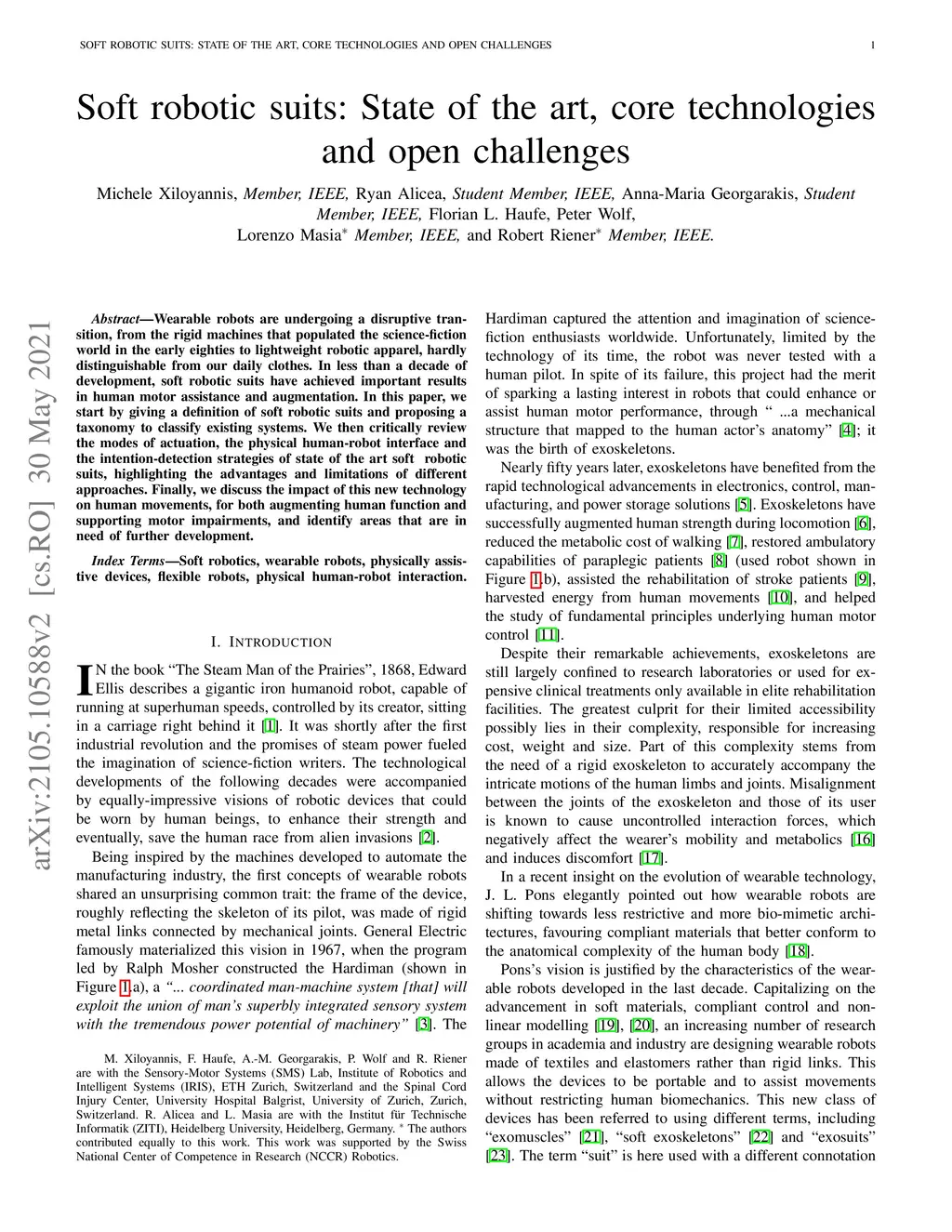 Soft robotic suits: State of the art, core technologies and open