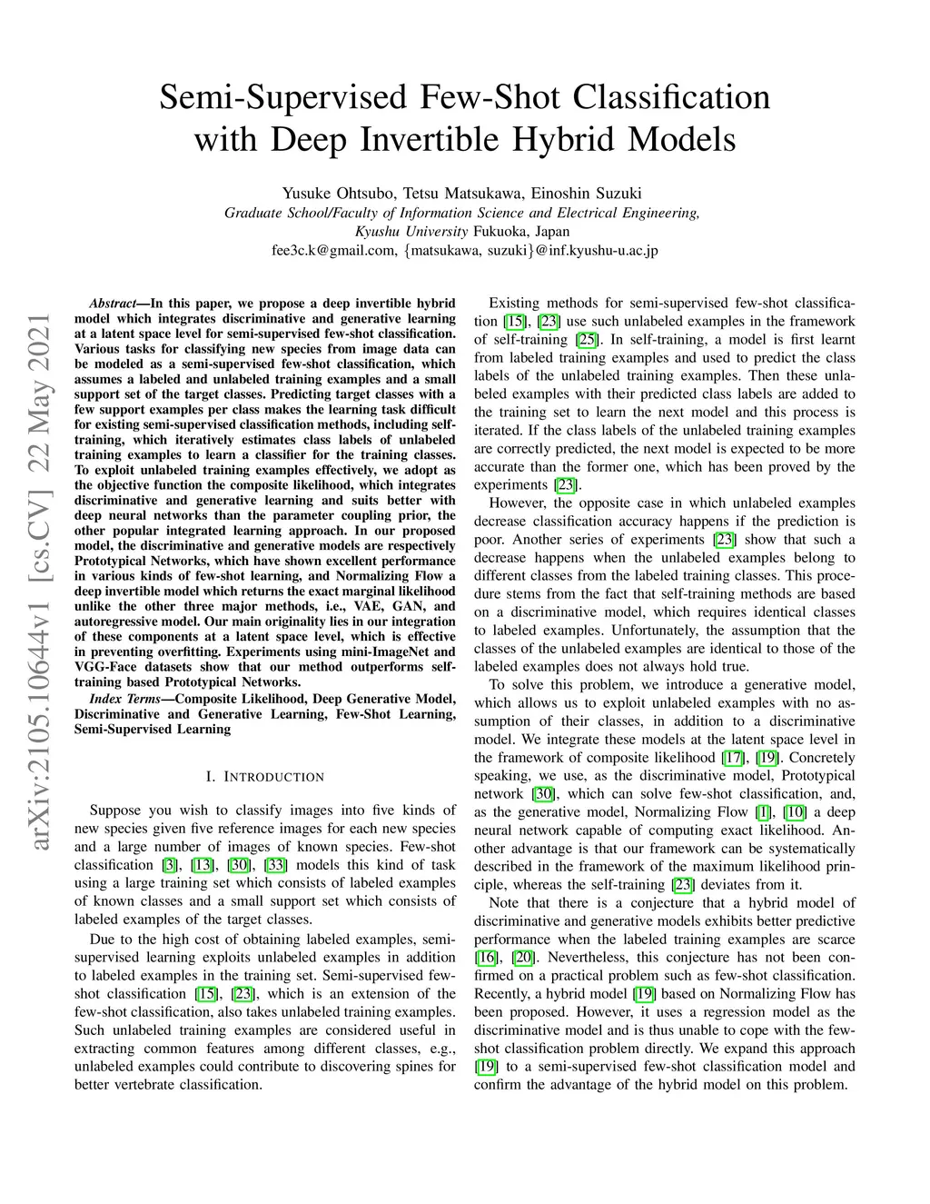 Semi-Supervised Few-Shot Classification with Deep Invertible Hybrid