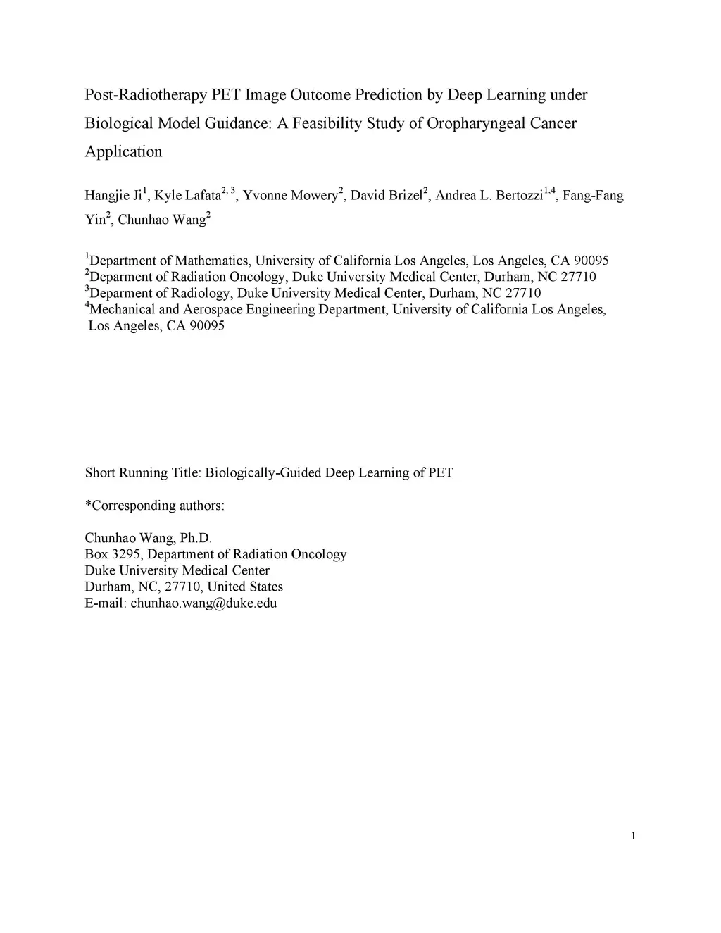 Post-Radiotherapy PET Image Outcome Prediction by Deep Learning under