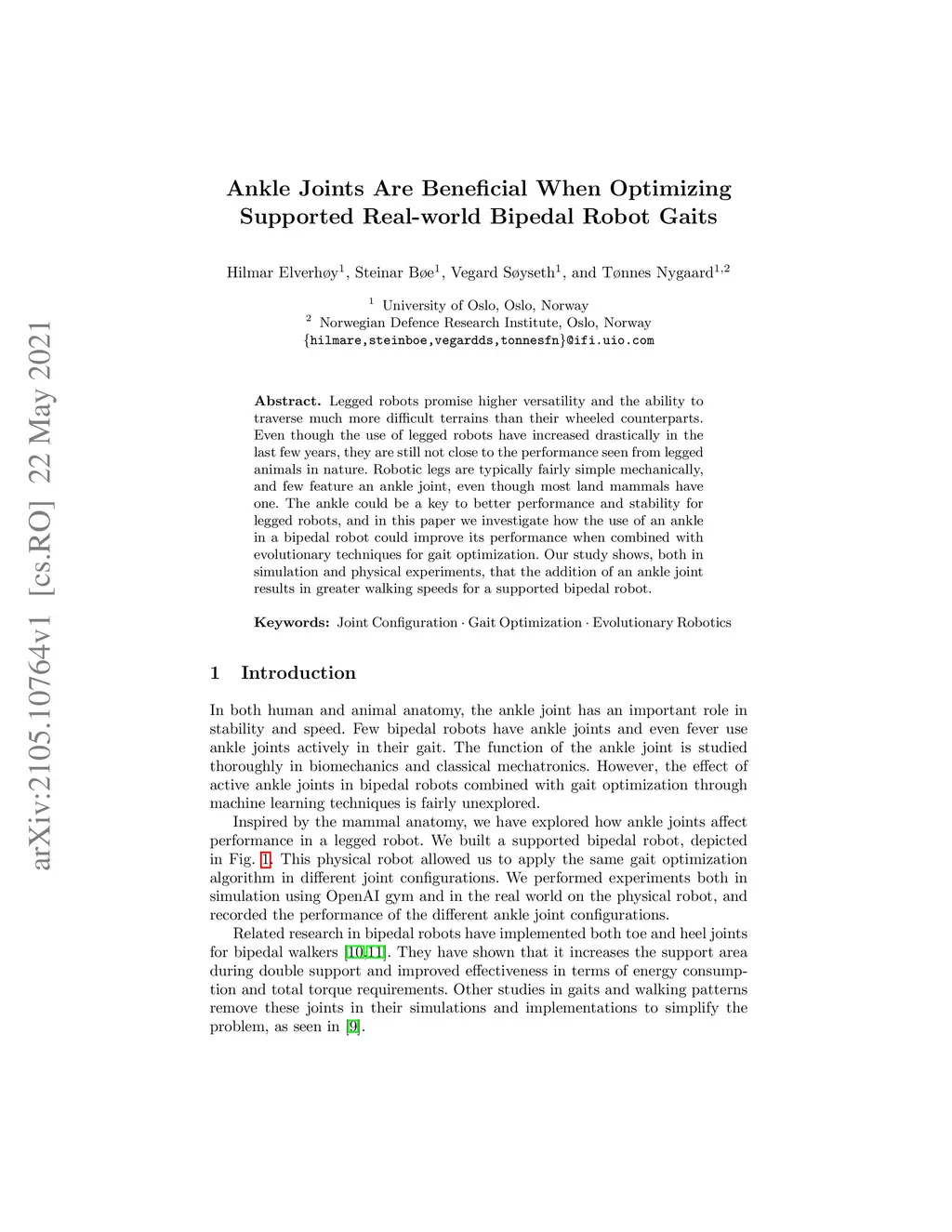 Legged robots promise higher versatility and the ability to traverse much more difficult terrains than their wheeled counterparts. Even though the use of legged robots have increased drastically in the last few years, they are still not close to the performance seen from legged animals in nature. Robotic legs are typically fairly simple mechanically, and few feature an ankle joint, even though most land mammals have one. The ankle could be a key to better performance and stability for legged robots, and in this paper we investigate how the use of an ankle in a bipedal robot could improve its performance when combined with evolutionary techniques for gait optimization. Our study shows, both in simulation and physical experiments, that the addition of an ankle joint results in greater walking speeds for a supported bipedal robot.