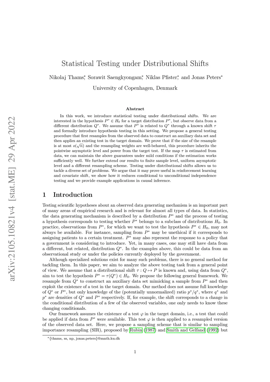 Statistical Testing under Distributional Shifts