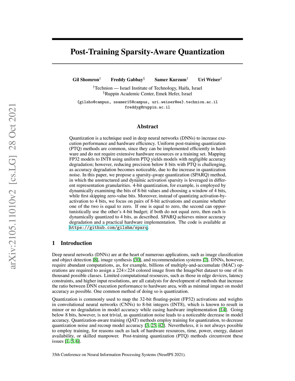 Post-Training Sparsity-Aware Quantization