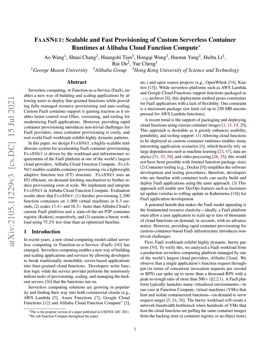 FaaSNet: Scalable and Fast Provisioning of Custom Serverless Container