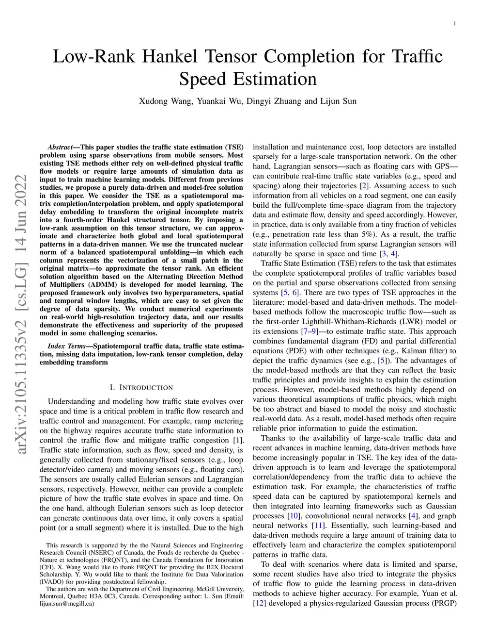 Low-Rank Hankel Tensor Completion for Traffic Speed Estimation