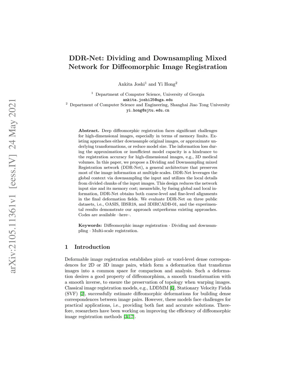 DDR-Net: Dividing and Downsampling Mixed Network for Diffeomorphic Image