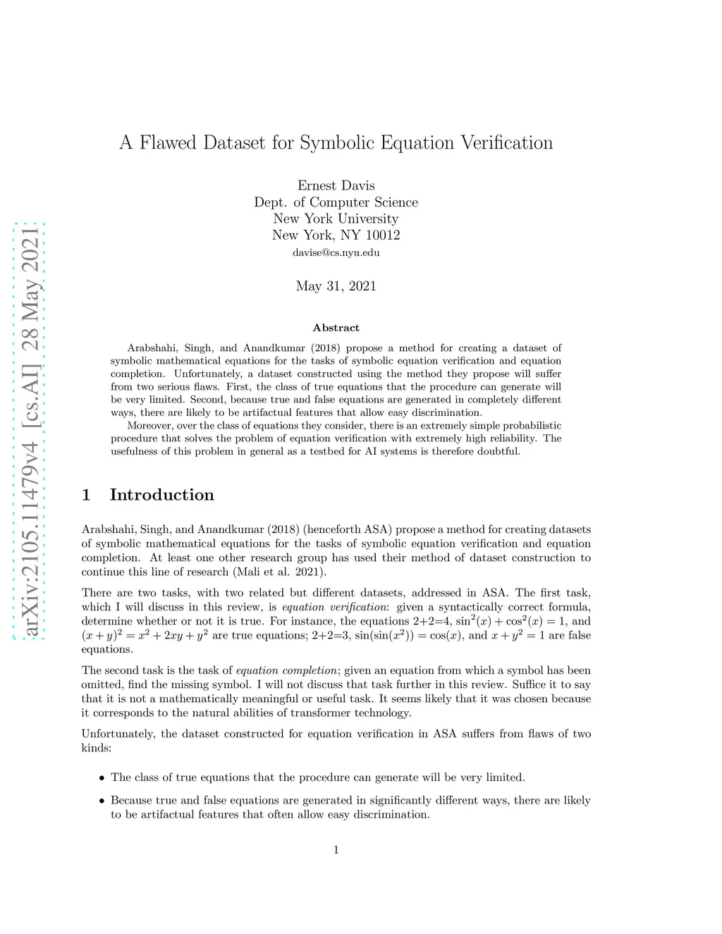 A Flawed Dataset for Symbolic Equation Verification