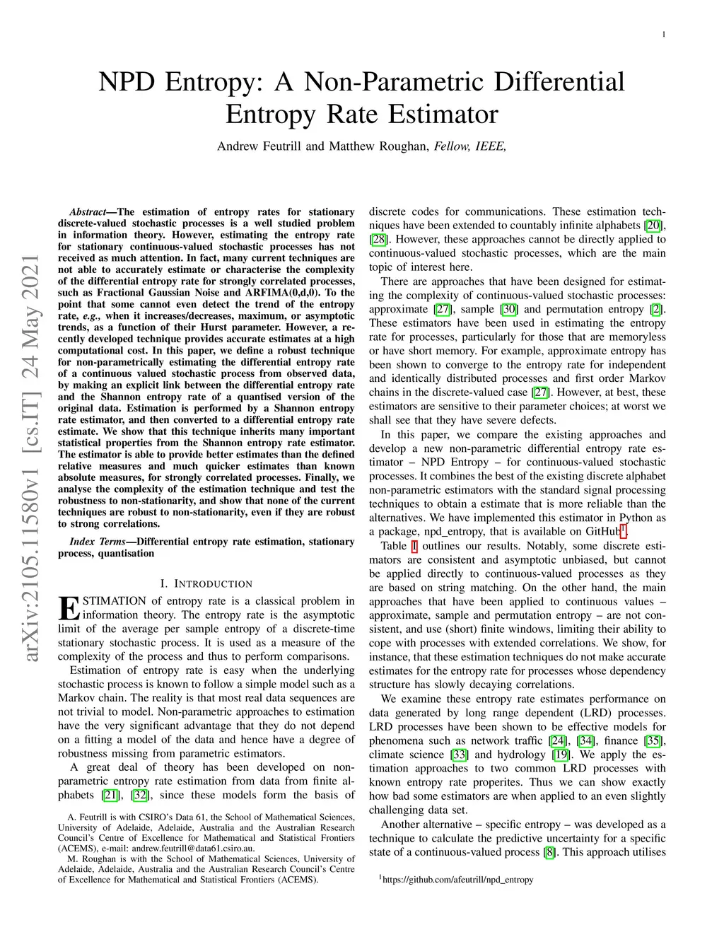 NPD Entropy: A Non-Parametric Differential Entropy Rate Estimator