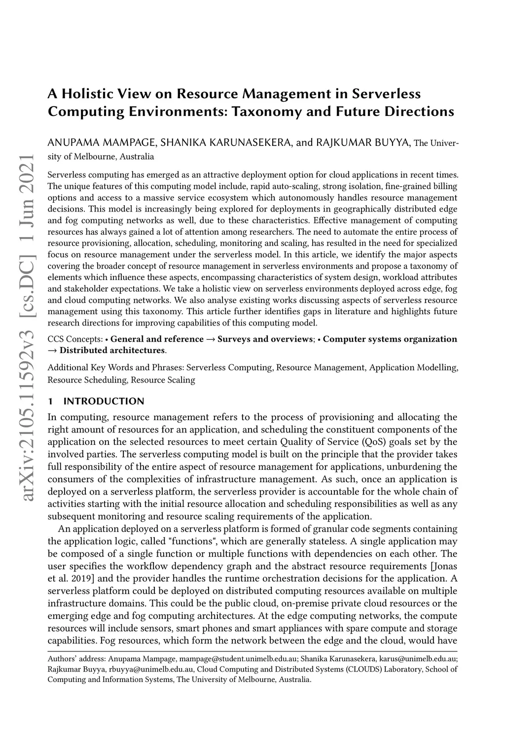 A Holistic View on Resource Management in Serverless Computing