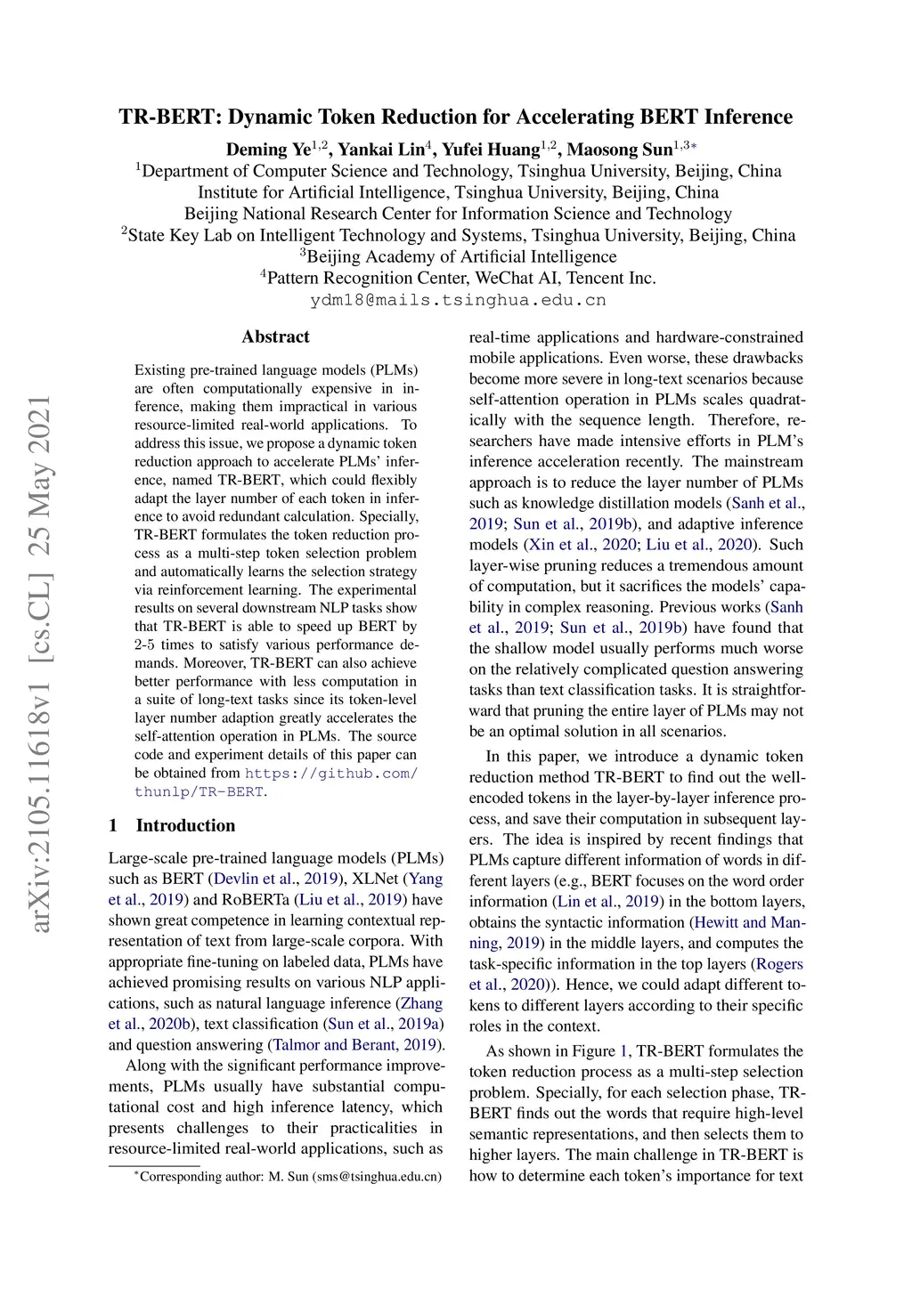 TR-BERT: Dynamic Token Reduction for Accelerating BERT Inference