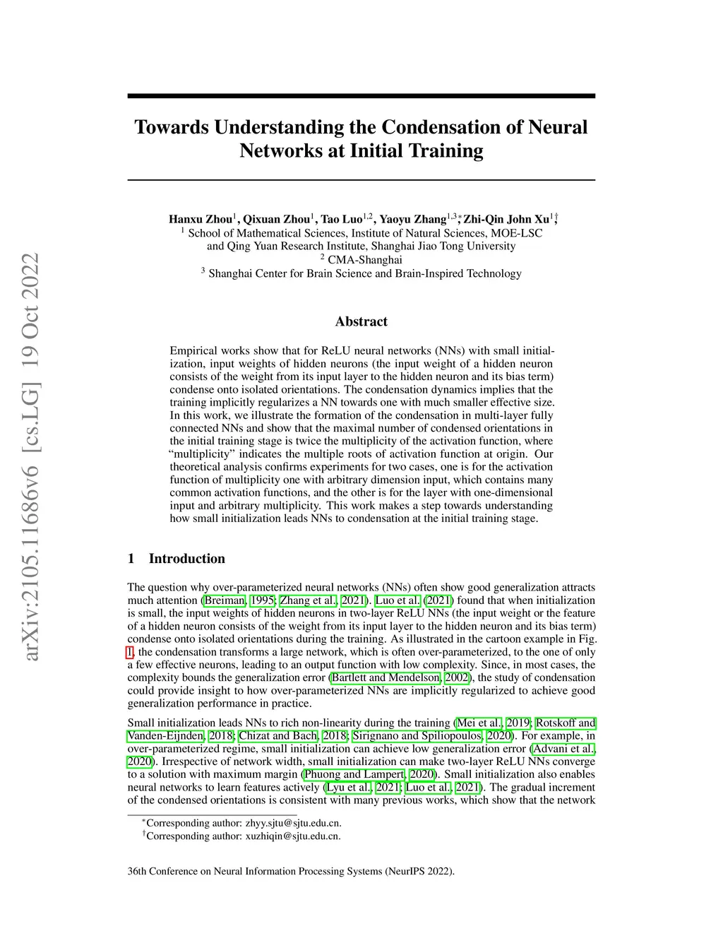 Empirical works show that for ReLU neural networks (NNs) with small initialization, input weights of hidden neurons (the input weight of a hidden neuron consists of the weight from its input layer to the hidden neuron and its bias term) condense on isolated orientations. The condensation dynamics implies that the training implicitly regularizes a NN towards one with a much smaller effective size. In this work, we illustrate the formation of the condensation in multi-layer fully connected NNs and show that the maximal number of condensed orientations in the initial training stage is twice the multiplicity of the activation function, where "multiplicity" indicates the multiple roots of activation function at origin. Our theoretical analysis confirms experiments for two cases, one is for the activation function of multiplicity one with arbitrary dimension input, which contains many common activation functions, and the other is for the layer with one-dimensional input and arbitrary multiplicity. This work makes a step towards understanding how small initialization leads NNs to condensation at the initial training stage.
