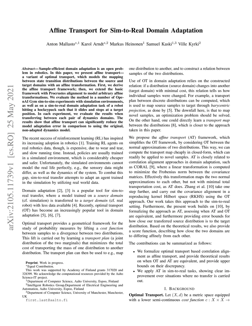 Affine Transport for Sim-to-Real Domain Adaptation
