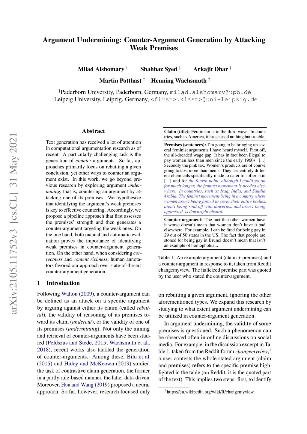 Argument Undermining: Counter-Argument Generation by Attacking Weak