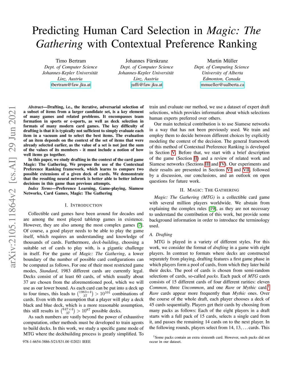 Predicting Human Card Selection in Magic: The Gathering with Contextual