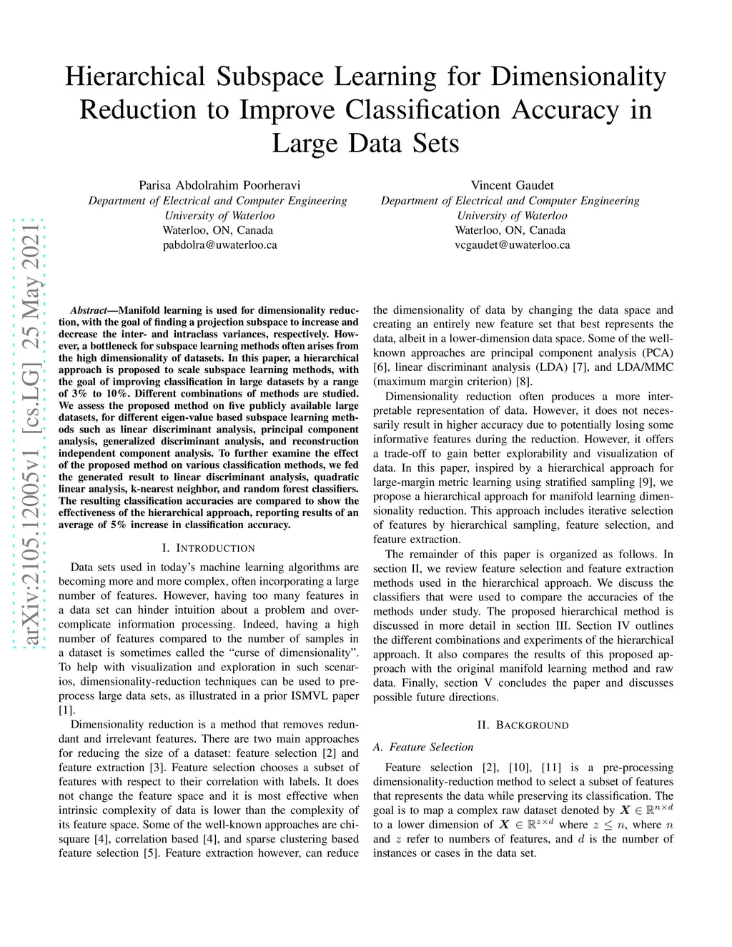 Hierarchical Subspace Learning for Dimensionality Reduction to Improve