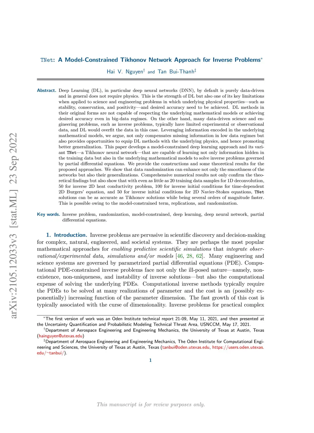 TNet: A Model-Constrained Tikhonov Network Approach for Inverse Problems