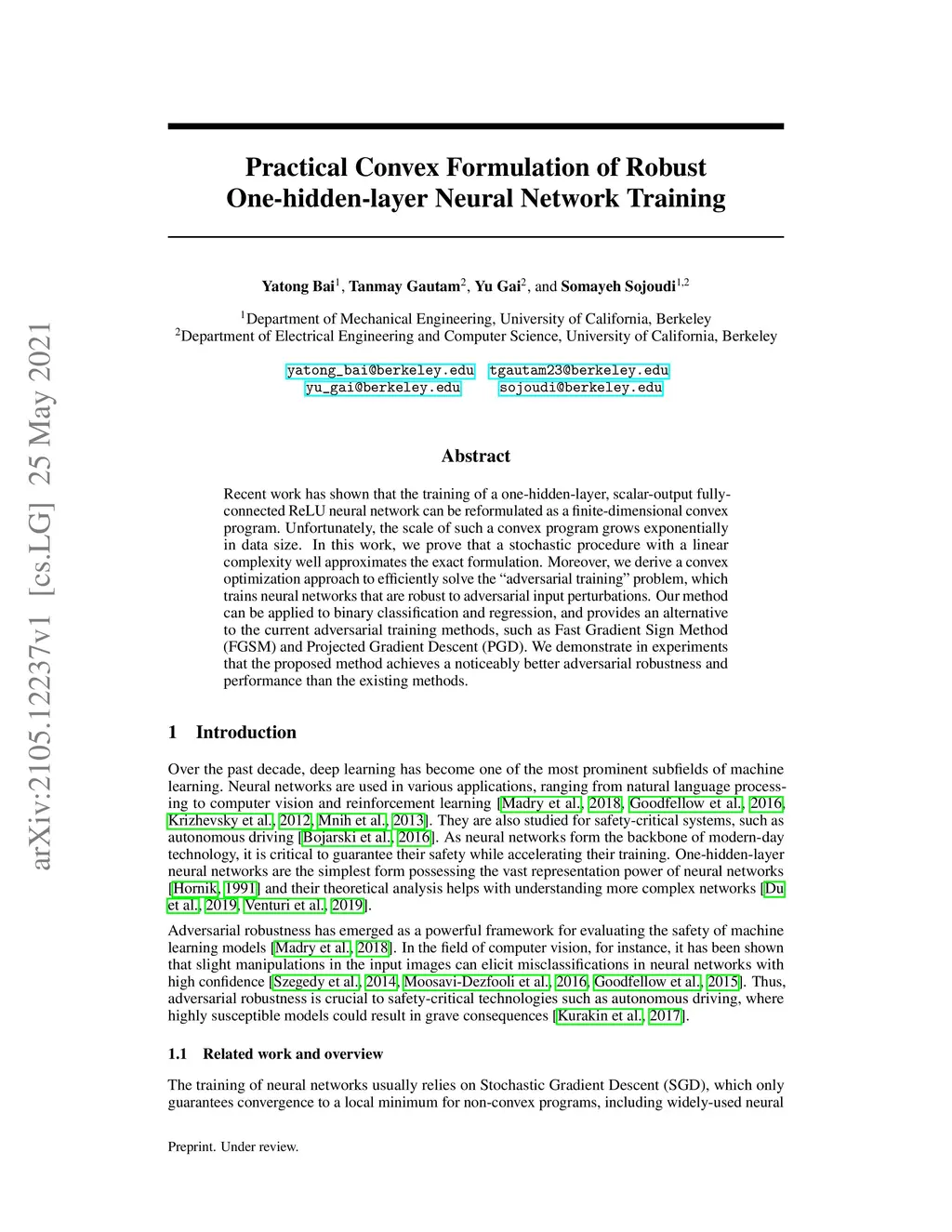 Practical Convex Formulation of Robust One-hidden-layer Neural Network