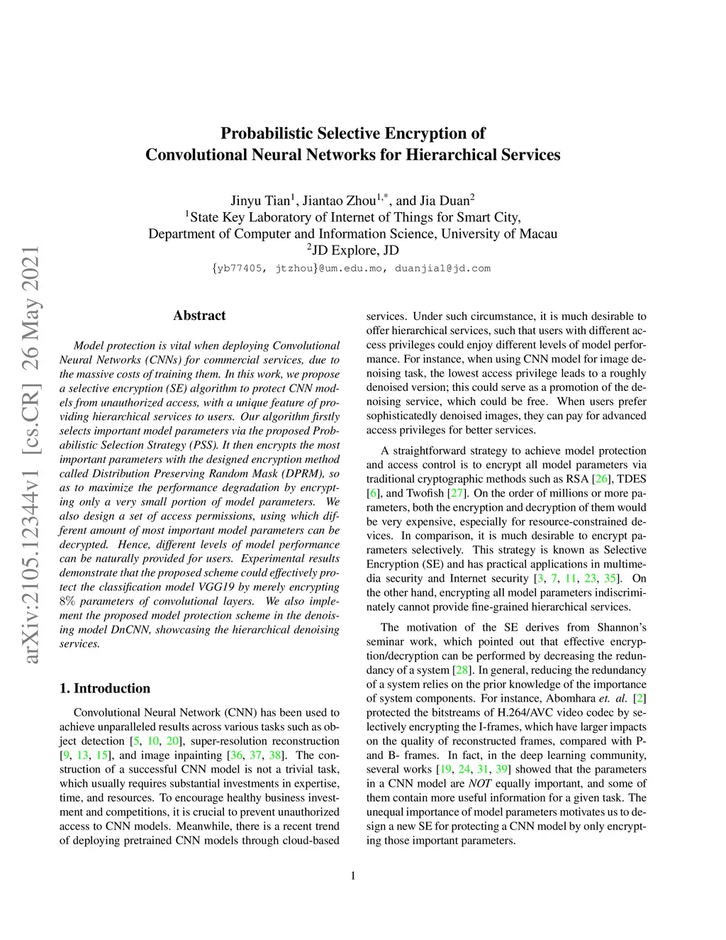 Probabilistic Selective Encryption of Convolutional Neural Networks for