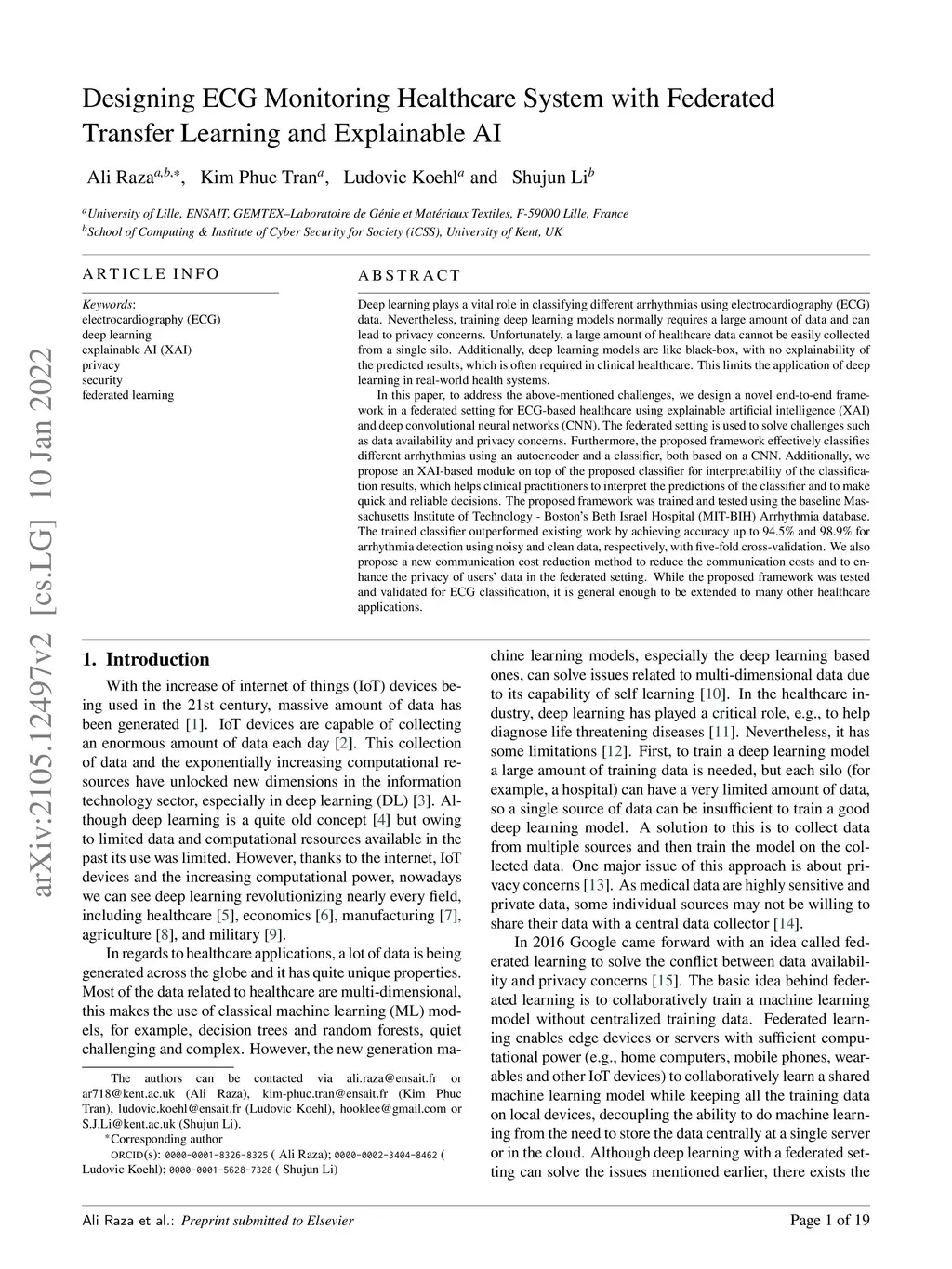 Designing ECG Monitoring Healthcare System with Federated Transfer