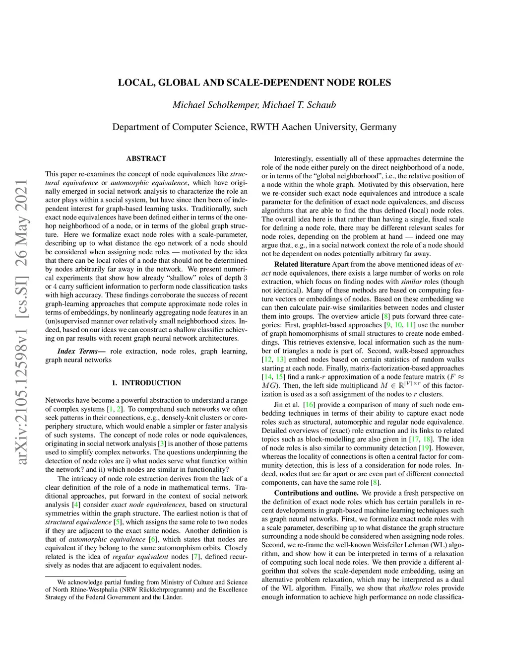 This paper re-examines the concept of node equivalences like structural equivalence or automorphic equivalence, which have originally emerged in social network analysis to characterize the role an actor plays within a social system, but have since then been of independent interest for graph-based learning tasks. Traditionally, such exact node equivalences have been defined either in terms of the one hop neighborhood of a node, or in terms of the global graph structure. Here we formalize exact node roles with a scale-parameter, describing up to what distance the ego network of a node should be considered when assigning node roles - motivated by the idea that there can be local roles of a node that should not be determined by nodes arbitrarily far away in the network. We present numerical experiments that show how already "shallow" roles of depth 3 or 4 carry sufficient information to perform node classification tasks with high accuracy. These findings corroborate the success of recent graph-learning approaches that compute approximate node roles in terms of embeddings, by nonlinearly aggregating node features in an (un)supervised manner over relatively small neighborhood sizes. Indeed, based on our ideas we can construct a shallow classifier achieving on par results with recent graph neural network architectures.