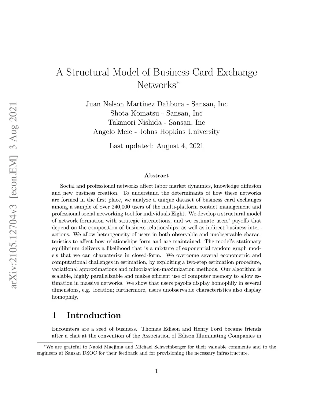 Social and professional networks affect labor market dynamics, knowledge diffusion and new business creation. To understand the determinants of how these networks are formed in the first place, we analyze a unique dataset of business cards exchanges among a sample of over 240,000 users of the multi-platform contact management and professional social networking tool for individuals Eight. We develop a structural model of network formation with strategic interactions, and we estimate users' payoffs that depend on the composition of business relationships, as well as indirect business interactions. We allow heterogeneity of users in both observable and unobservable characteristics to affect how relationships form and are maintained. The model's stationary equilibrium delivers a likelihood that is a mixture of exponential random graph models that we can characterize in closed-form. We overcome several econometric and computational challenges in estimation, by exploiting a two-step estimation procedure, variational approximations and minorization-maximization methods. Our algorithm is scalable, highly parallelizable and makes efficient use of computer memory to allow estimation in massive networks. We show that users payoffs display homophily in several dimensions, e.g. location; furthermore, users unobservable characteristics also display homophily.