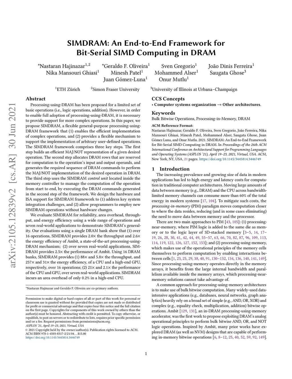 SIMDRAM: An End-to-End Framework for Bit-Serial SIMD Computing in DRAM