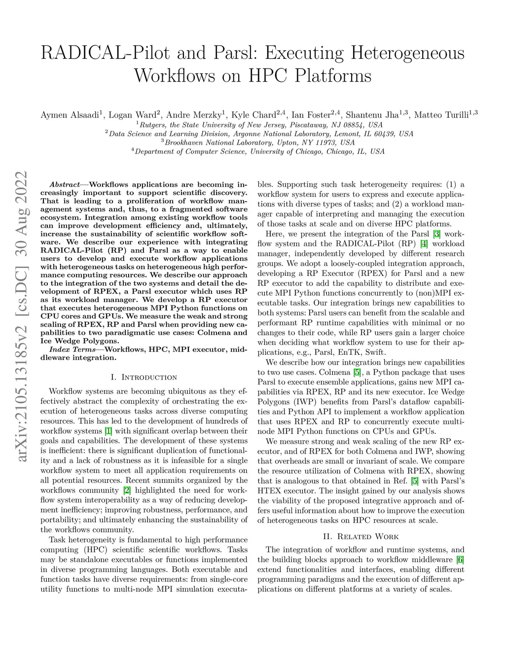 RADICAL-Pilot and Parsl: Executing Heterogeneous Workflows on HPC