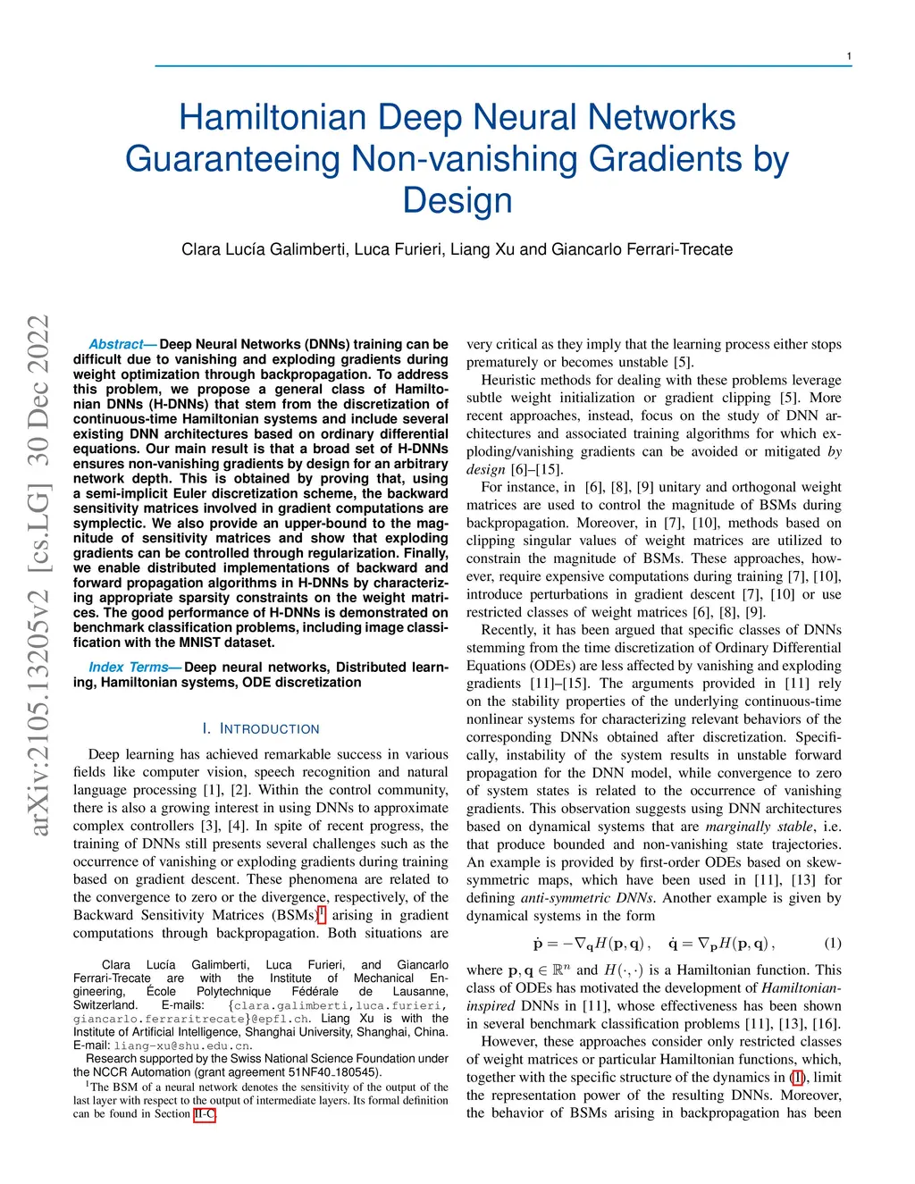 Hamiltonian Deep Neural Networks Guaranteeing Non-vanishing Gradients by