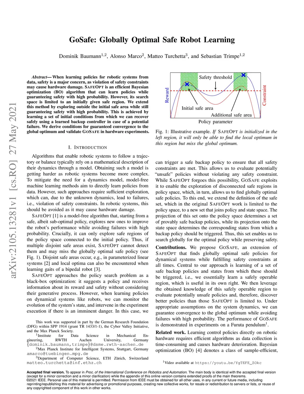 GoSafe: Globally Optimal Safe Robot Learning