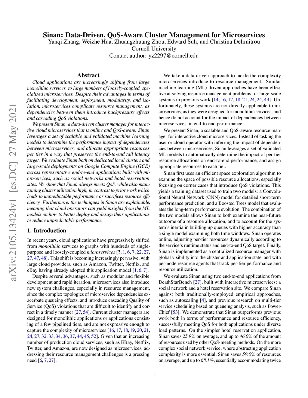 Sinan: Data-Driven, QoS-Aware Cluster Management for Microservices