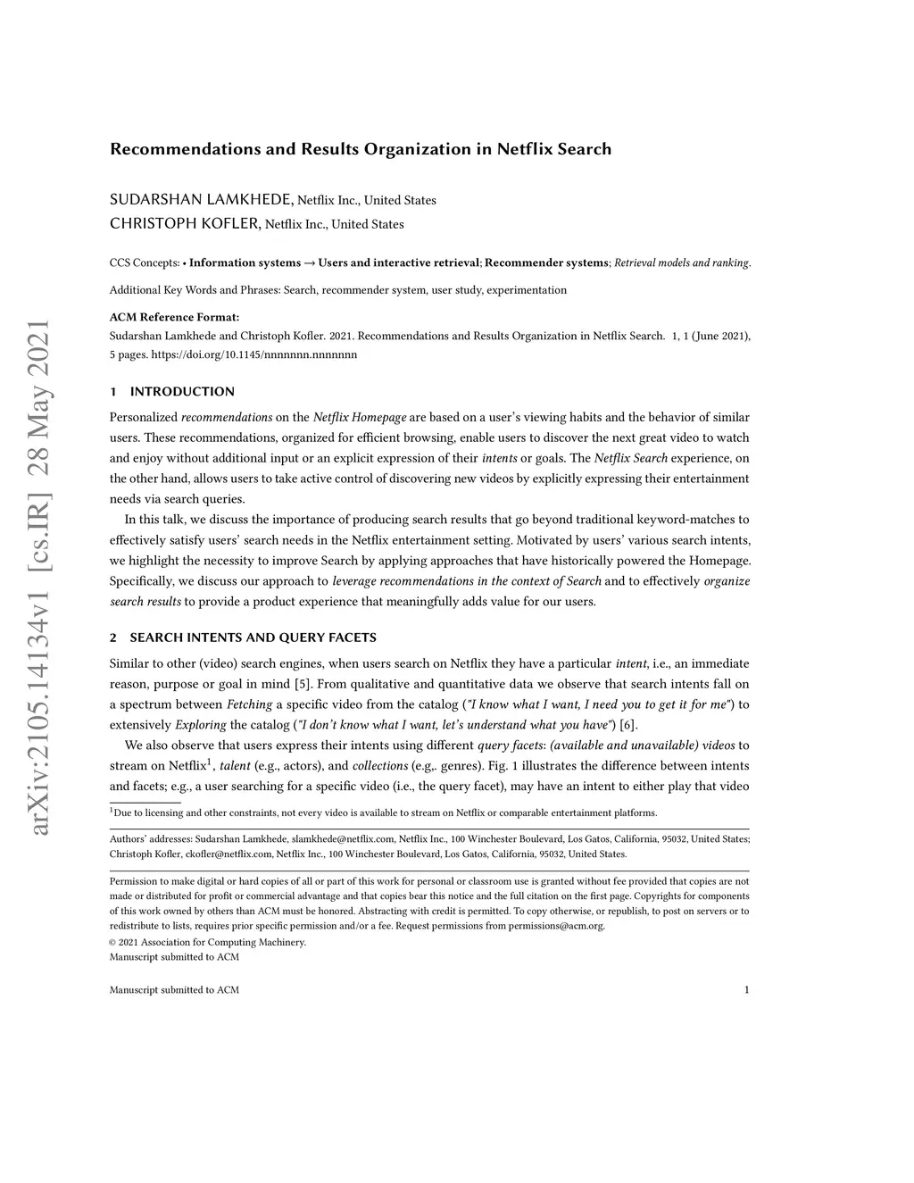 Recommendations and Results Organization in Netflix Search