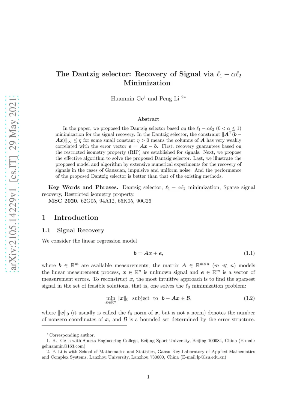 The Dantzig selector: Recovery of Signal via