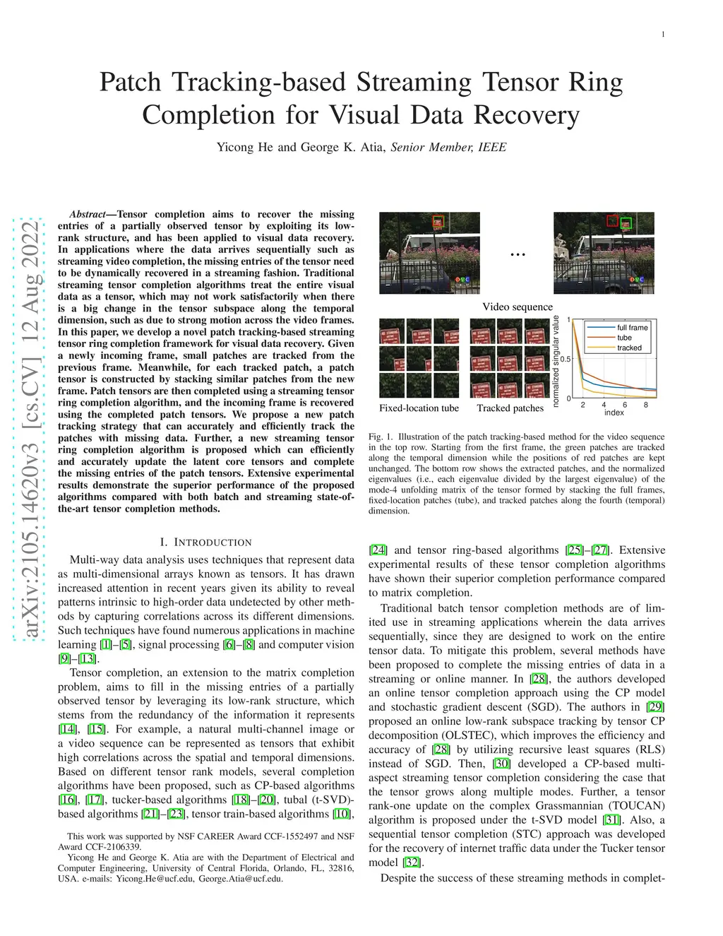 Tensor completion aims to recover the missing entries of a partially observed tensor by exploiting its low-rank structure, and has been applied to visual data recovery. In applications where the data arrives sequentially such as streaming video completion, the missing entries of the tensor need to be dynamically recovered in a streaming fashion. Traditional streaming tensor completion algorithms treat the entire visual data as a tensor, which may not work satisfactorily when there is a big change in the tensor subspace along the temporal dimension, such as due to strong motion across the video frames. In this paper, we develop a novel patch tracking-based streaming tensor ring completion framework for visual data recovery. Given a newly incoming frame, small patches are tracked from the previous frame. Meanwhile, for each tracked patch, a patch tensor is constructed by stacking similar patches from the new frame. Patch tensors are then completed using a streaming tensor ring completion algorithm, and the incoming frame is recovered using the completed patch tensors. We propose a new patch tracking strategy that can accurately and efficiently track the patches with missing data. Further, a new streaming tensor ring completion algorithm is proposed which can efficiently and accurately update the latent core tensors and complete the missing entries of the patch tensors. Extensive experimental results demonstrate the superior performance of the proposed algorithms compared with both batch and streaming state-of-the-art tensor completion methods.