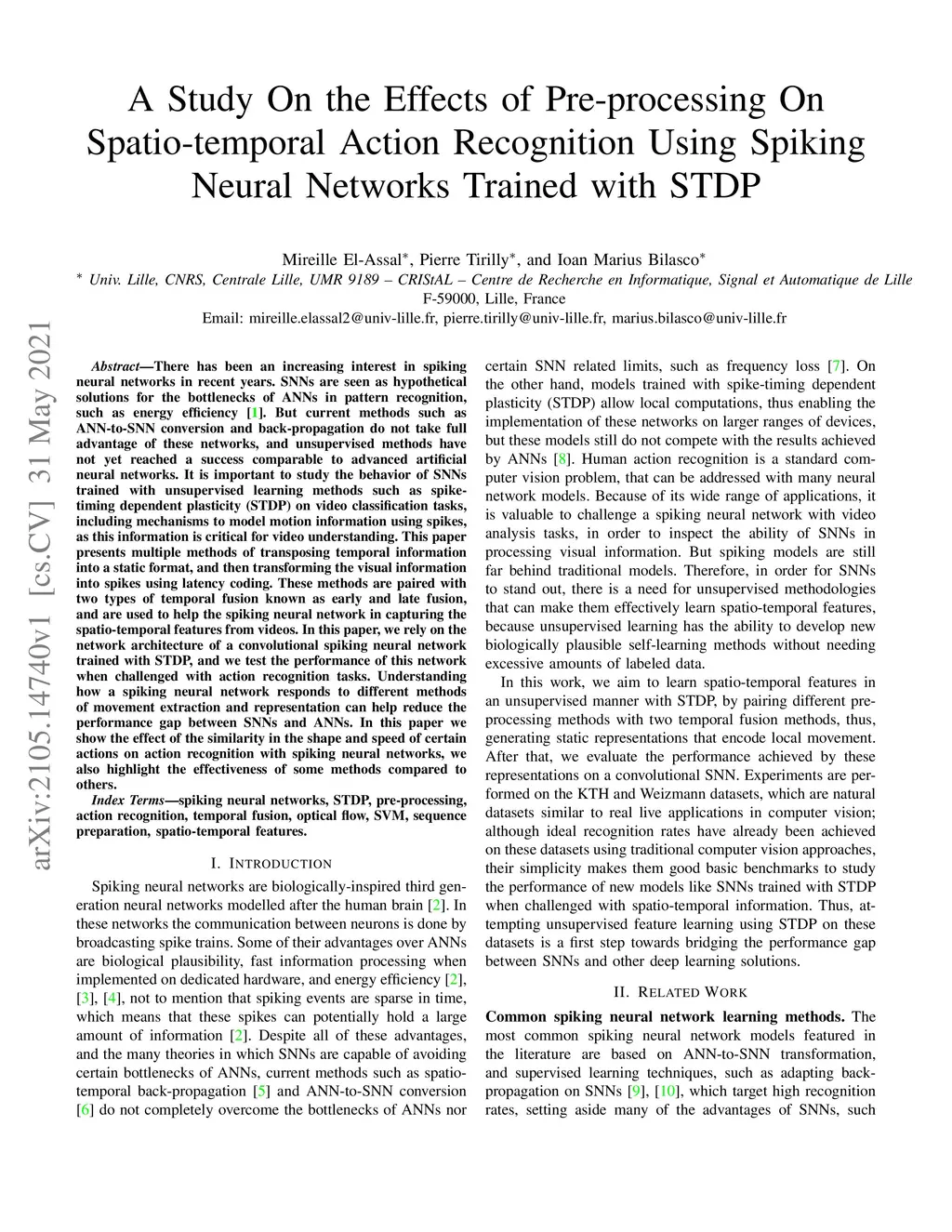 There has been an increasing interest in spiking neural networks in recent years. SNNs are seen as hypothetical solutions for the bottlenecks of ANNs in pattern recognition, such as energy efficiency. But current methods such as ANN-to-SNN conversion and back-propagation do not take full advantage of these networks, and unsupervised methods have not yet reached a success comparable to advanced artificial neural networks. It is important to study the behavior of SNNs trained with unsupervised learning methods such as spike-timing dependent plasticity (STDP) on video classification tasks, including mechanisms to model motion information using spikes, as this information is critical for video understanding. This paper presents multiple methods of transposing temporal information into a static format, and then transforming the visual information into spikes using latency coding. These methods are paired with two types of temporal fusion known as early and late fusion, and are used to help the spiking neural network in capturing the spatio-temporal features from videos. In this paper, we rely on the network architecture of a convolutional spiking neural network trained with STDP, and we test the performance of this network when challenged with action recognition tasks. Understanding how a spiking neural network responds to different methods of movement extraction and representation can help reduce the performance gap between SNNs and ANNs. In this paper we show the effect of the similarity in the shape and speed of certain actions on action recognition with spiking neural networks, we also highlight the effectiveness of some methods compared to others.