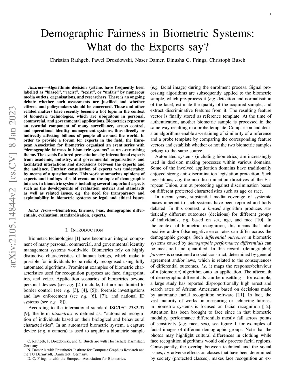 Demographic Fairness in Biometric Systems: What do the Experts say?