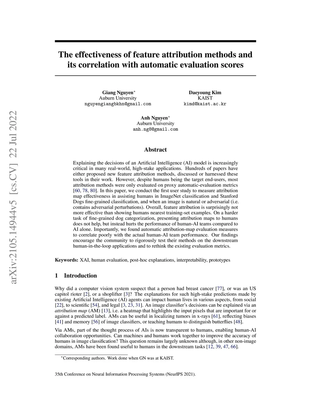 Explaining the decisions of an Artificial Intelligence (AI) model is increasingly critical in many real-world, high-stake applications. Hundreds of papers have either proposed new feature attribution methods, discussed or harnessed these tools in their work. However, despite humans being the target end-users, most attribution methods were only evaluated on proxy automatic-evaluation metrics (Zhang et al. 2018; Zhou et al. 2016; Petsiuk et al. 2018). In this paper, we conduct the first user study to measure attribution map effectiveness in assisting humans in ImageNet classification and Stanford Dogs fine-grained classification, and when an image is natural or adversarial (i.e., contains adversarial perturbations). Overall, feature attribution is surprisingly not more effective than showing humans nearest training-set examples. On a harder task of fine-grained dog categorization, presenting attribution maps to humans does not help, but instead hurts the performance of human-AI teams compared to AI alone. Importantly, we found automatic attribution-map evaluation measures to correlate poorly with the actual human-AI team performance. Our findings encourage the community to rigorously test their methods on the downstream human-in-the-loop applications and to rethink the existing evaluation metrics.