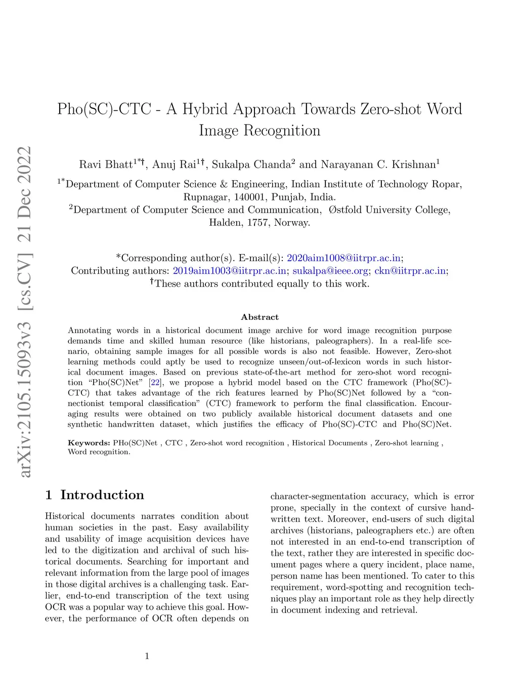 Pho(SC)-CTC -- A Hybrid Approach Towards Zero-shot Word Image