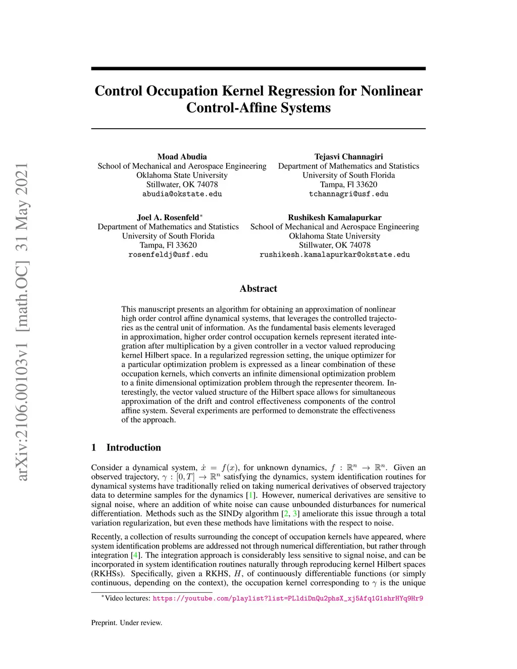 Control Occupation Kernel Regression for Nonlinear Control-Affine Systems