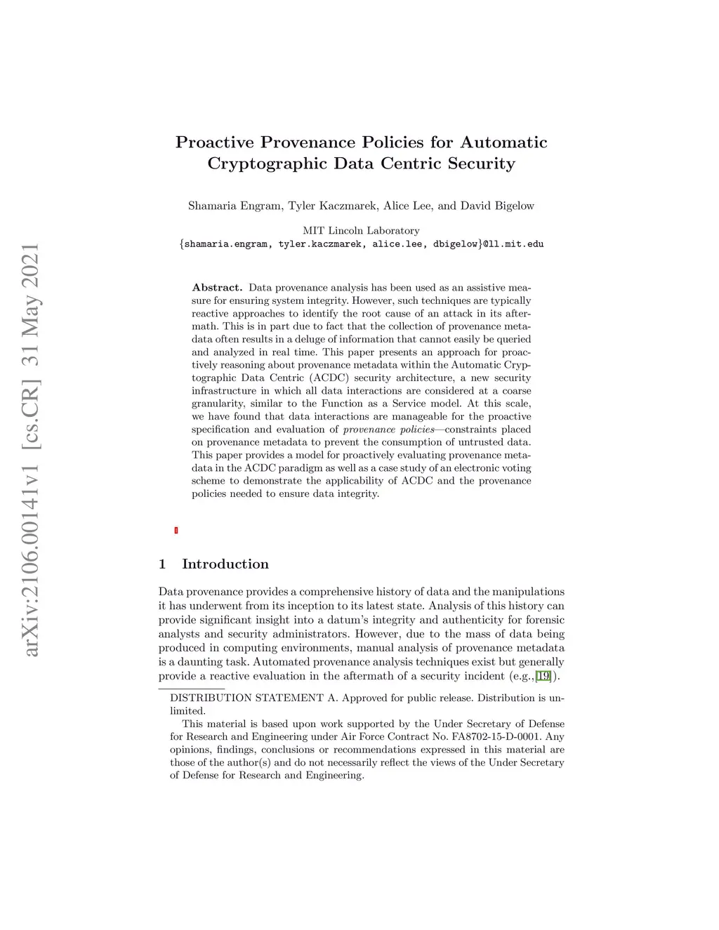 Data provenance analysis has been used as an assistive measure for ensuring system integrity. However, such techniques are typically reactive approaches to identify the root cause of an attack in its aftermath. This is in part due to fact that the collection of provenance metadata often results in a deluge of information that cannot easily be queried and analyzed in real time. This paper presents an approach for proactively reasoning about provenance metadata within the Automatic Cryptographic Data Centric (ACDC) security architecture, a new security infrastructure in which all data interactions are considered at a coarse granularity, similar to the Function as a Service model. At this scale, we have found that data interactions are manageable for the proactive specification and evaluation of provenance policies -- constraints placed on provenance metadata to prevent the consumption of untrusted data. This paper provides a model for proactively evaluating provenance metadata in the ACDC paradigm as well as a case study of an electronic voting scheme to demonstrate the applicability of ACDC and the provenance policies needed to ensure data integrity.