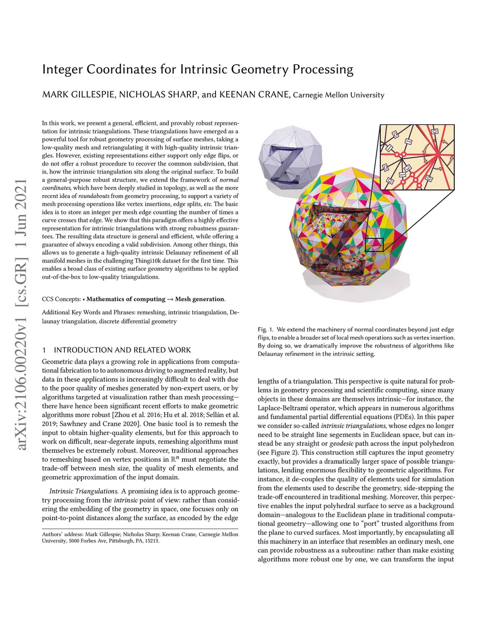 Integer Coordinates for Intrinsic Geometry Processing