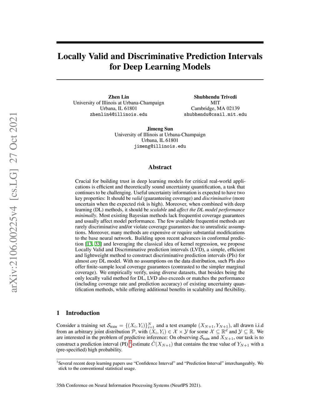 Crucial for building trust in deep learning models for critical real-world applications is efficient and theoretically sound uncertainty quantification, a task that continues to be challenging. Useful uncertainty information is expected to have two key properties: It should be valid (guaranteeing coverage) and discriminative (more uncertain when the expected risk is high). Moreover, when combined with deep learning (DL) methods, it should be scalable and affect the DL model performance minimally. Most existing Bayesian methods lack frequentist coverage guarantees and usually affect model performance. The few available frequentist methods are rarely discriminative and/or violate coverage guarantees due to unrealistic assumptions. Moreover, many methods are expensive or require substantial modifications to the base neural network. Building upon recent advances in conformal prediction [13, 33] and leveraging the classical idea of kernel regression, we propose Locally Valid and Discriminative prediction intervals (LVD), a simple, efficient, and lightweight method to construct discriminative prediction intervals (PIs) for almost any DL model. With no assumptions on the data distribution, such PIs also offer finite-sample local coverage guarantees (contrasted to the simpler marginal coverage). We empirically verify, using diverse datasets, that besides being the only locally valid method for DL, LVD also exceeds or matches the performance (including coverage rate and prediction accuracy) of existing uncertainty quantification methods, while offering additional benefits in scalability and flexibility.
